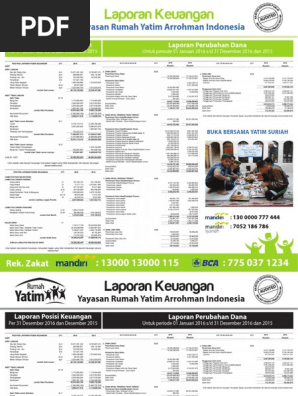 Laporan keuangan yayasan rumah zakat indonesia. Https Yappika Actionaid Or Id Download Laporan 20tahunan Audit Report 2015 Pdf. Format laporan keuangan Yayasan Rumah Yatim Arrohman menggunakan format dua kolom dengan menyajikan tahun 2015 dan tahun 2016. Jenis Dan Contoh Laporan Keuangan Lembaga Zakat Gustani Id.